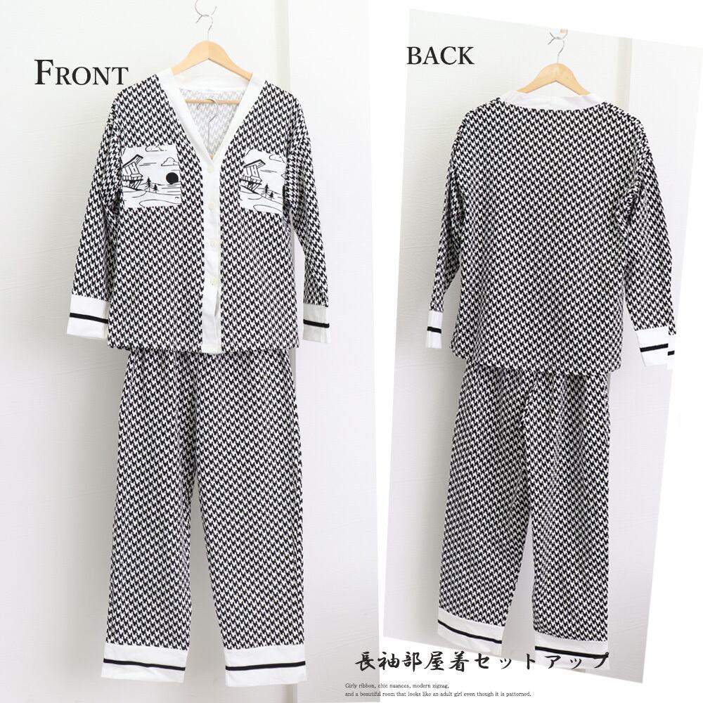 ガーリーなリボン、シックなニュアンス、モダンな千鳥、柄物なのにオトナ女子っぽいきれいめルームウェア。