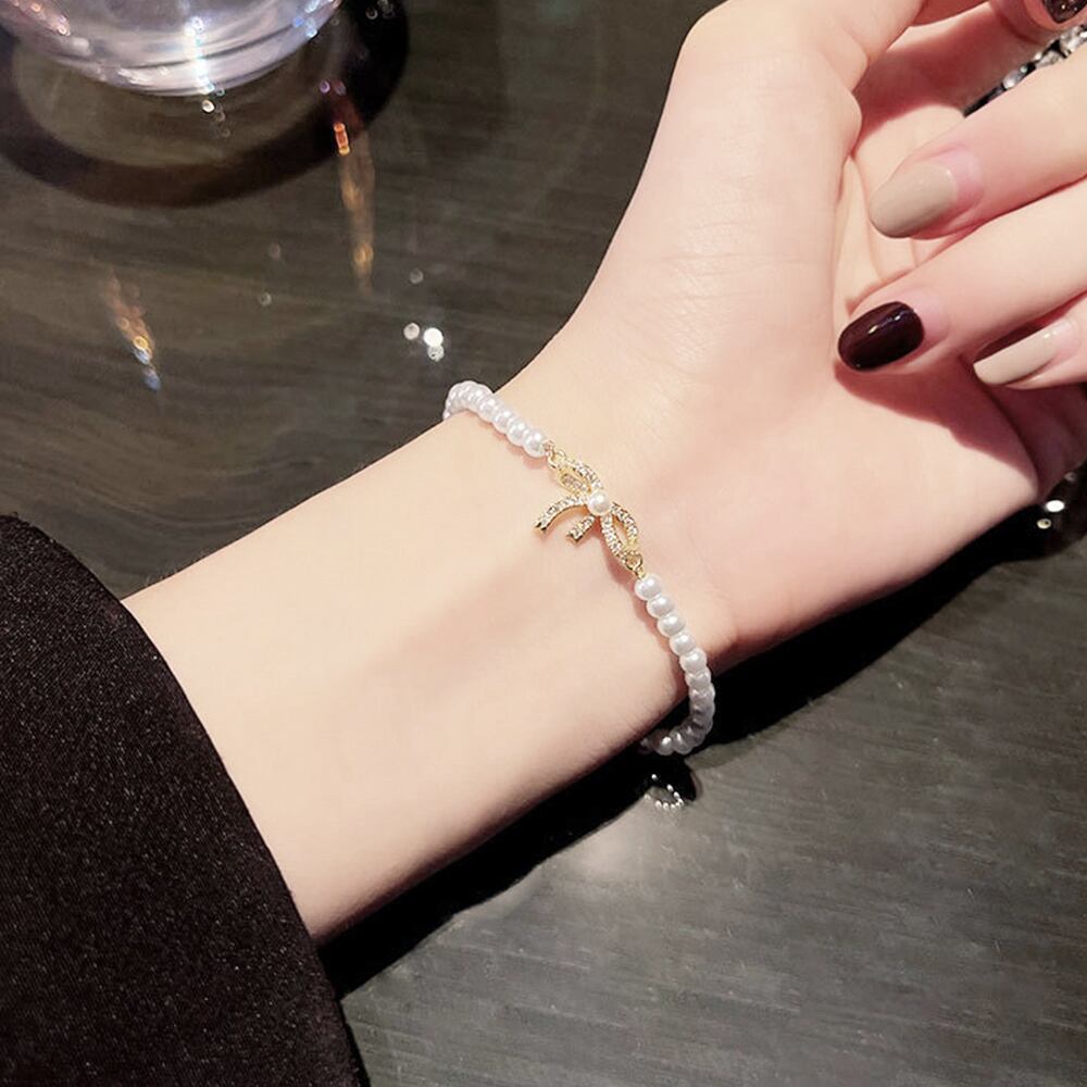 リボンモチーフが可愛らしい蝶々結びのデザインが魅力的なリボンブレスレットです。パールの輝きが女性らしさを引き立て、どんなコーディネートにもぴったりなアイテムです。特別な日や普段使いにも最適で、あなたの手元を華やかに彩ります。ぜひ、このアイテムを日常に取り入れて、オシャレを楽しんでみてください!